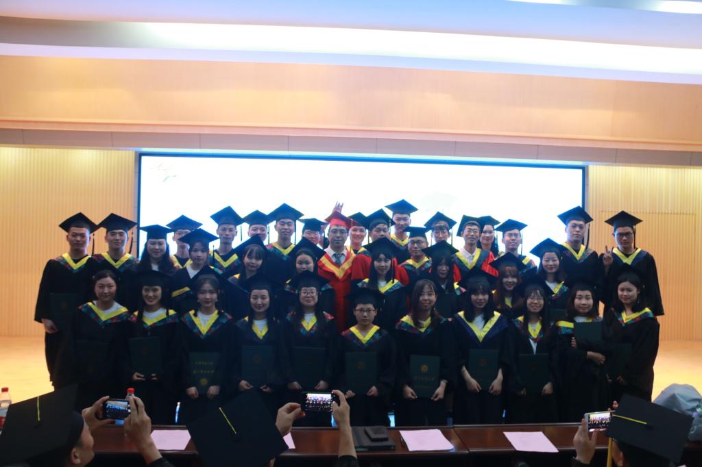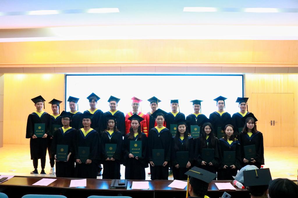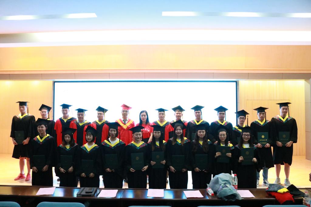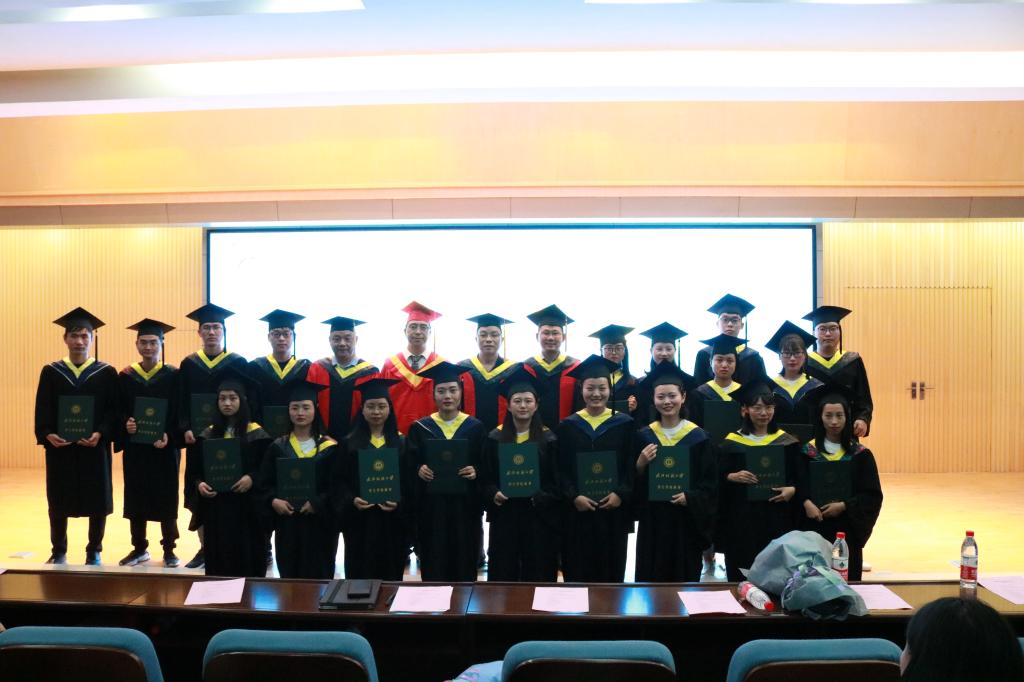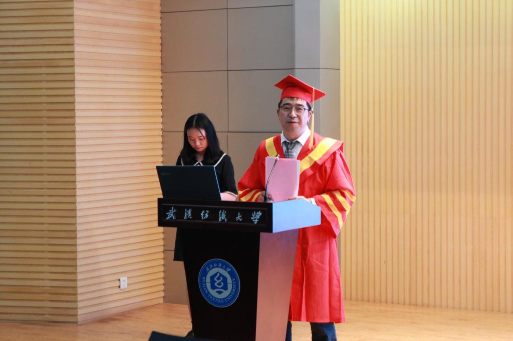 yl7703永利2019届本科生学位授予仪式开始。本次学位授予仪式由蔡光明教授主持,纺织工程系系主任曹新旺老师为2019届毕业生颁发学位证书,张尚勇经理为学士学位获得者拨穗,正冠。