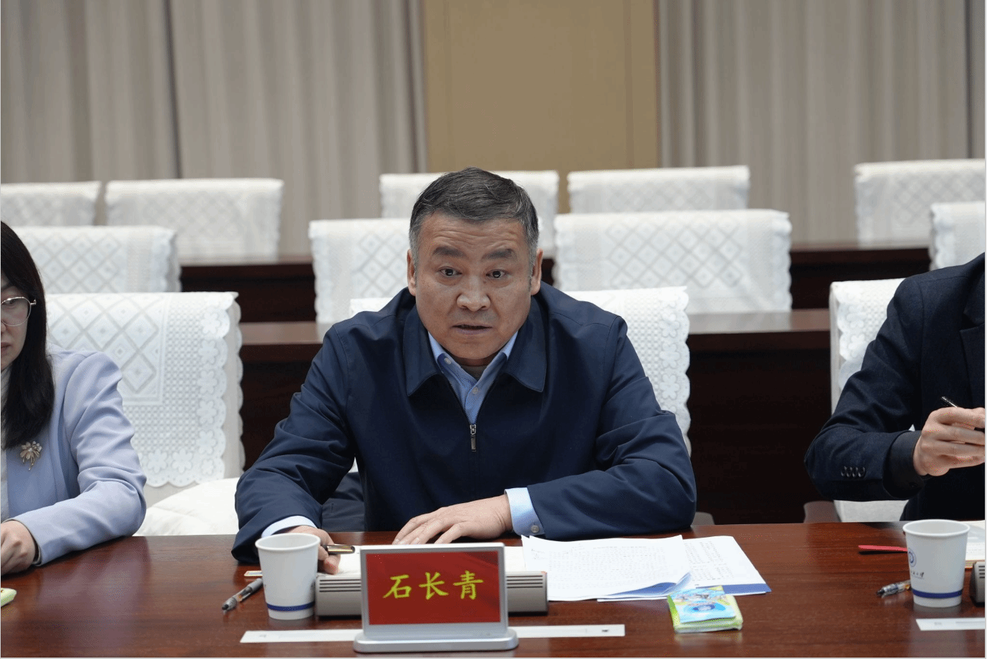 座谈会上,徐卫林对石长青一行的到访表示热烈欢迎,代表公司对新疆理工职业大学的办学定位和发展成效给予高度评价,并全面介绍了公司的办学规模、学科发展、团队引育、人才培养、科技创新和社会服务等方面实践举措。他指出,两校开展深度合作,既有利于新疆理工职业大学更好地发挥新疆资源禀赋优势,也有利于永利官网更好地服务国家纺织强国战略,更深度融入新疆棉花全产业链升级与现代纺织产业体系构建。他希望未来双方以纺织学科为纽带,聚焦团队共建、科研协同、实习实训、就业联动四大维度,进一步细化合作举措、健全长效机制,共同书写两校协同发展、合作共赢的崭新篇章。