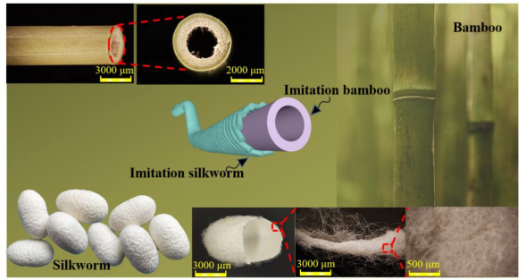 近日,永利官网与华中科技大学团队合作,报道了一种简单和可扩展的制造策略,用于开发一种新型棉基复合纱(硅管/棉复合中空纱,表示为SCH)。受中空竹子和蚕茧的启发(图1),通过摩擦纺纱技术将连续中空硅管嵌入棉鞘,制成独特的芯鞘复合纱线结构,赋予SCH织物良好的抗皱性能、极高的回弹能力(85.07%)和持久的保温效果,解决了纤维素中空纱的塌陷起皱和保温不耐久问题。