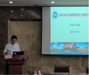 参会人员观看了永利官网最新科技成果推介宣传片后,永利官网高层次人才任学宏教授、吴济宏教授分别就纺织品多功能整理及功能性聚合物、高端功能面料生产关键技术及产业化应用两项科技成果做推介。