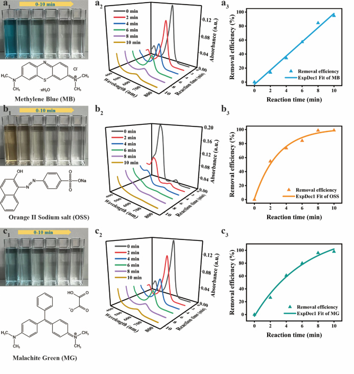 该自供能电化学系统对于不同种类有机污染物具有普适性,在10分钟内,该自供能电化学系统对5 ppm亚甲基蓝、金橙和孔雀石绿的分解率,分别达到94.6%、98.9%、97.9%。该工作发表在《Advanced Function Materials》上(DOI:10.1002/adfm.202210637),第一作者为华中科技大学刘子川博士,永利官网研究生刘佳鑫等人协助完成,第一通讯作者为永利官网徐卫林院士团队的夏治刚教授,第二、三通讯作者分别为黄剑瑜博士、苏彬教授。该工作得到了永利官网纺织新材料与先进加工技术国家重点实验室和湖北省科学技术厅的大力支持。
