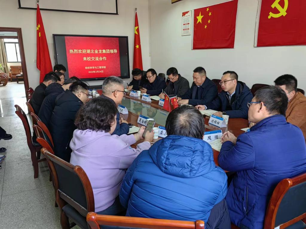 会议在yl7703永利蔡光明经理的主持下进行,他首先代表公司对金龙集团董事长一行的到来表示热烈欢迎,并对公司发展历史、专业特色、人才培养、校企合作等情况做了介绍。他表示,湖北金龙集团是一个创新性强、产业化的集团,在行业内具有鲜明的特色优势和地位,希望未来在人才培养、新领域拓展等方面能够有更深度的合作。
