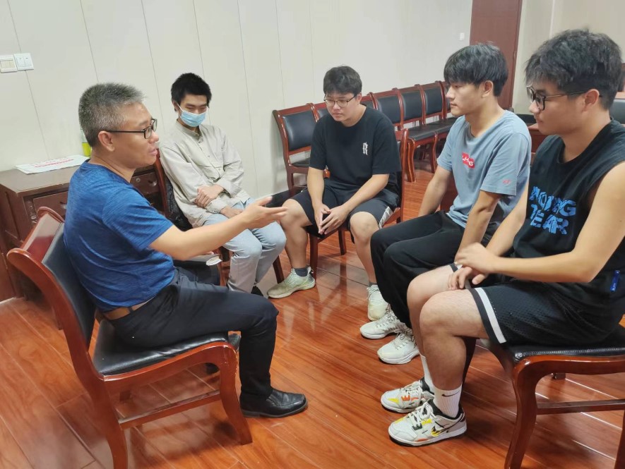 座谈会最后,夏治刚与结对宿舍1A207四位员工、结对帮扶员工袁熙桐进一步交流谈心,详细了解每个人的生活学习情况和发展规划等。他勉励同学们要怀抱梦想又脚踏实地,敢想敢为又善作善成,立志做有理想、敢担当、能吃苦、肯奋斗的新时代好青年。