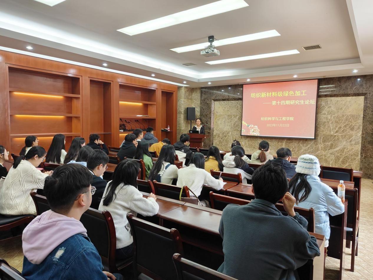 首先,江珊老师介绍了举办研究生论坛的主旨和意义,同时宣布第十四期“纺织新材料及绿色加工”研究生论坛开始。