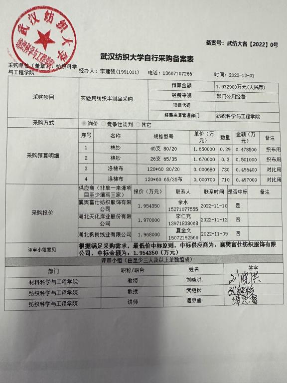 关于实验用纺织半制品采购的公示
