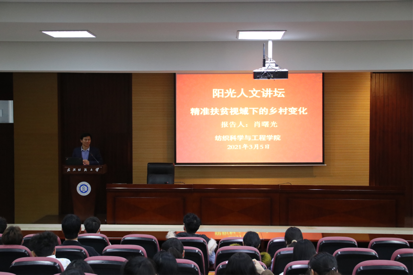 2021年3月5日下午,由校团委主办、yl7703永利承办的第222期阳光人文讲坛在阳光校区行政楼报告厅举行。本次讲坛邀请到了全国脱贫攻坚先进个人、宜昌五峰土家自治县红旗坪村驻村第一书记、“中国好人”、荆楚楷模、永利官网员工肖曙光为全校近百名师生带来了以“精准扶贫视域下的乡村变化”为主题的报告。yl7703永利党委书记张红鑫及公司学工干部聆听了报告。