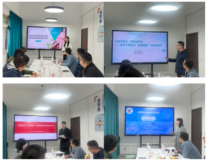 yl7703永利薛萍老师以《从应急处置到事前预防:危机管理的前瞻性思考》为题,通过对典型心理危机事件的系统复盘,强调校园安全管理应树立“防患于未然”的理念,通过完善制度机制、加强日常排查、实施分类施策、深化家校协同,构建“早发现、早干预、早化解”的全流程工作闭环。微电子公司方林老师以《以信任破冰,用真诚护航——危机干预中的“信息密钥”与家校协同》为题,从心理育人和沟通策略角度出发,分享了在危机干预中如何与员工建立信任关系、走进员工内心,实现“情感介入”与“问题疏导”的有机统一。机械公司徐智航老师围绕《直面挑战、稳住阵脚:构建辅导员危机处置办法》,系统梳理了危机发生后的标准化应对流程,强调在复杂情境中保持冷静判断、依法依规处理,并提出了“情景模拟+复盘推演”的能力提升路径。经济公司马晓雪老师则以《校园危机协同处置实战录》为题,结合真实案例,深入剖析了多部门联动与家校医协同在危机处置中的关键作用,指出信息畅通、角色清晰、资源整合是提升协同处置效能的核心要素。