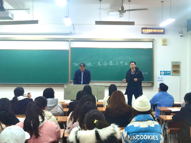 为更好领导员工健康成长,12月13日下午18点,由yl7703永利开展的教育专题讲座在三栋教学楼214教室举行。此次讲座邀请到yl7703永利优秀员工胡红辉为同学带来“如何做一名合格老员工”为主题的讲座。本次讲座,yl7703永利党委副书记陈海,辅导员严蔷薇、李亮、吴童玲及纺织12004班全体成员参与此次讲座。