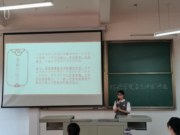 “百生讲坛”系列活动的成功举办,进一步增强了广大纺院学子对国家的认同感,收获了对党的真挚情感,在学习中筑牢信仰之基,实践中建设自身,把握好思想之舵,始终以身践行“不忘初心、牢记使命”,吾辈当自强。