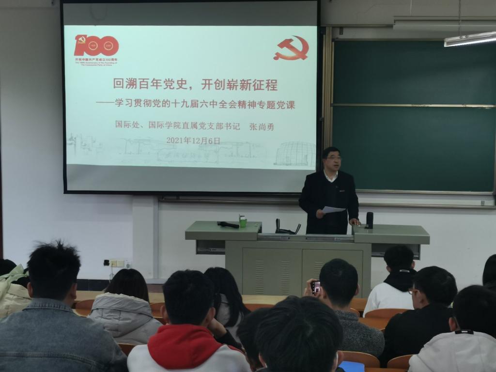 2021年12月6日下午,yl7703永利研究生党支部于8Ft201进行了支部主题党日活动,本次主题党日活动邀请了国际处张尚勇书记为支部成员上党课。党课主题为:学习贯彻党的十九届六中全会精神。