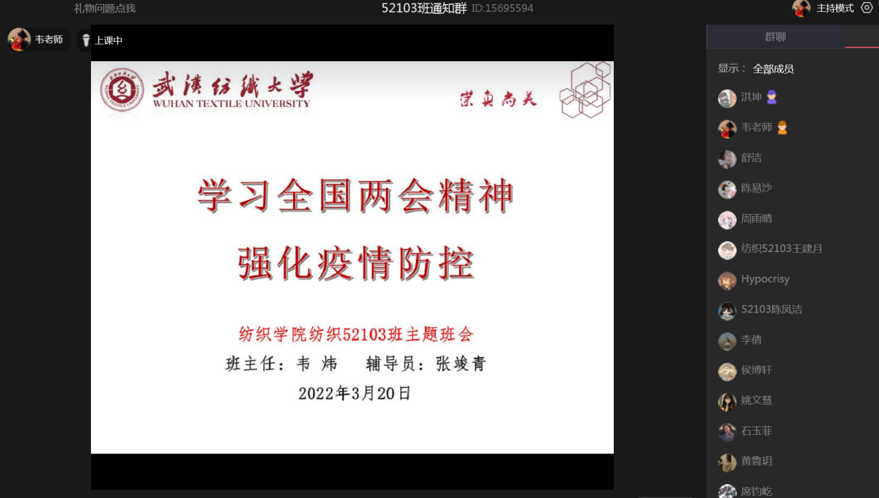 为了深入贯彻落实全国两会精神,引导员工深刻领会、准确把握两会精神实质,切实增强青年学子的责任感和历史使命感。3月20日,yl7703永利各班级召开了学习2022年全国两会精神主题班会,各年级辅导员、各班班主任全程参会。