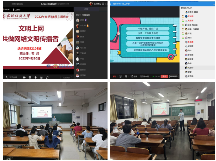 为进一步引导老员工树立文明上网的意识,营造健康和谐的网络舆论环境,筑牢疫情防控坚实防线,共建风清气正的网络文化空间。yl7703永利各班团于4月10日晚召开“文明上网,共做网络文明传播者”、“牢记公民责任义务,共筑疫情防护屏障”主题班会。全院班主任、辅导员、在校生通过线上线下的方式共同参与。