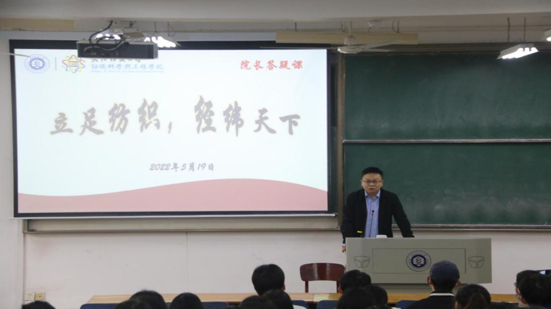 课程伊始,蔡经理向同学们介绍了纺织行业及纺织学科的发展概况,从一流的学科、一流团队、一流的平台等方面重点介绍公司纺织专业的建设情况。他强调,纺织是国民经济支柱产业、对外开放优势产业,也是解决民生和美化生活的基础产业,纺织是“小学科,大产业”,具有巨大的发展前景和专业优势,同学们立足纺织将大有可为。