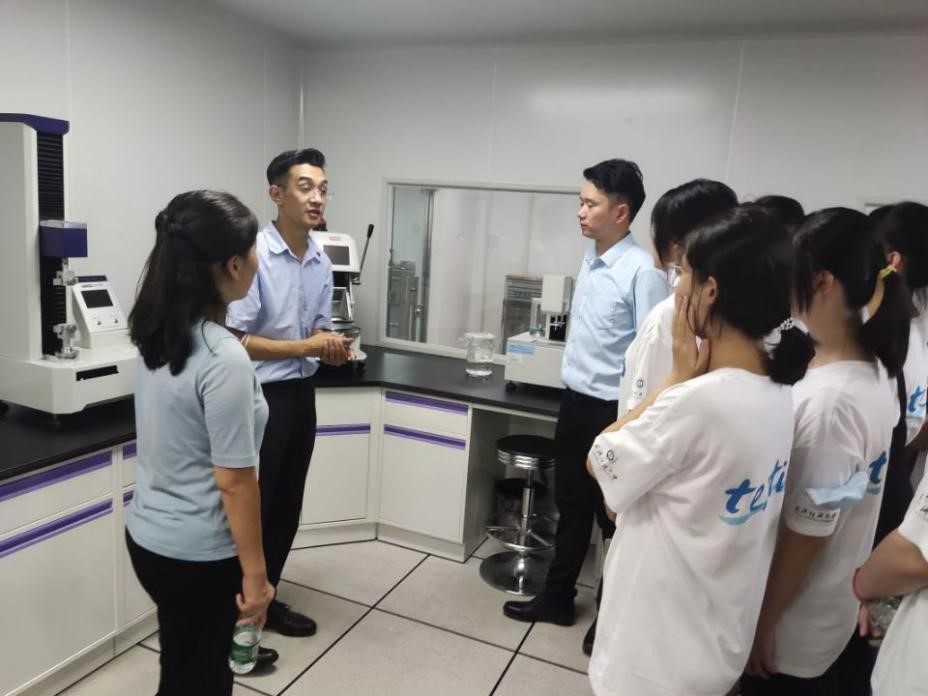 实践队员首先进入到丝宝集团的研发中心进行参观了解,丝宝集团负责人首先讲述丝宝集团的使命是为中国家庭提供高质量的护理产品和服务,为打造伟大品牌成为最理解中国女性,并不断提供健康保障产品及服务的营销品牌的美好前景,同时丝宝集团负责人介绍了企业创办宗旨:共建,奉献,创造,追求。稍后,丝宝集团负责人为纺织青春实践团介绍了洁婷品牌1997年至今的发展历程,由第一代护翼型卫生巾到推出纯棉无添加卫生巾。洁婷品牌深入洞察女性需求,进行创新发展、技术升级、产品创新,以精益求精的匠心精神,让洁婷一跃成为国内集实力,口碑,社会影响力于一体的新势力品牌。最后,丝宝集团负责人带领实践团队着重参观产品实验室及各种仪器。