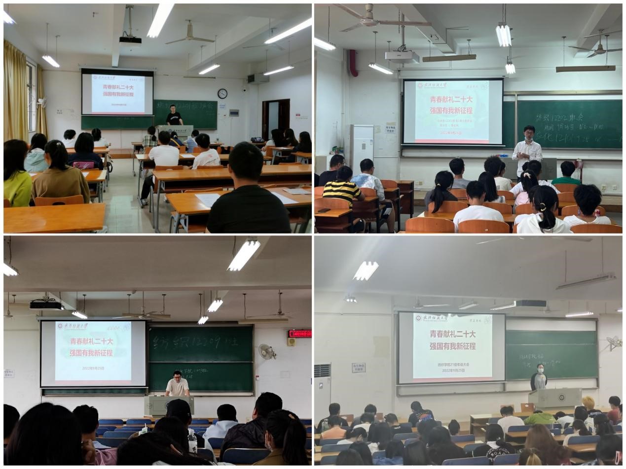 各年级辅导员、班主任老师则号召全体同学主动关注“二十大”相关知识,将自己的未来同国家的未来结合在一起,将自己的奋斗目标同国家的目标结合在一起,将中国梦作为自己的梦,把自己的理想融入中国梦,同时结合防范电信网络诈骗、普及金融知识、宗教观教育等方面进行对同学们的校园生活进行了重点提醒。