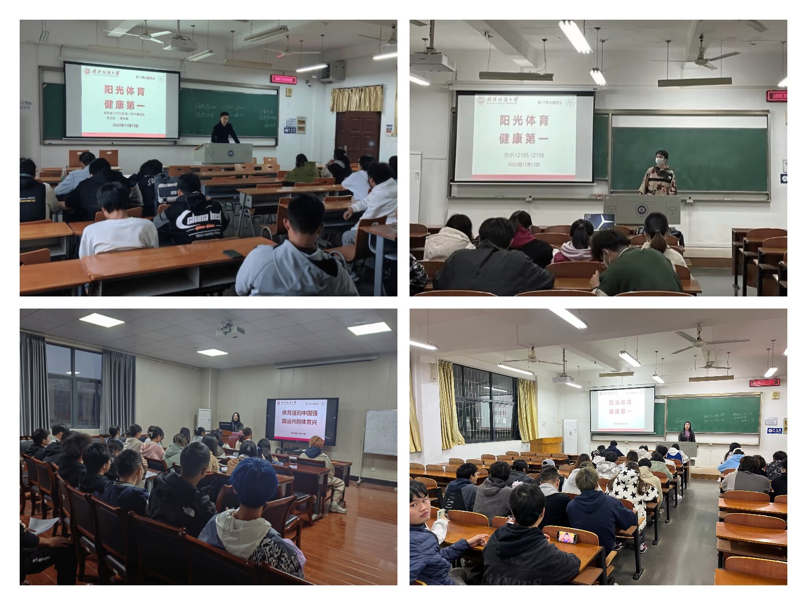 在班会上,老师结合当下国家倡导发展体育运动以及习近平总书记提到的健康第一的教育理念,提倡同学们更多的在日常生活中进行体育锻炼,增强个人体质,更多的参与到运动当中,除此之外,老师也向同学们普及了女排精神和女足精神的内涵,通过学习她们的精神,以此来激励同学们向榜样学习。