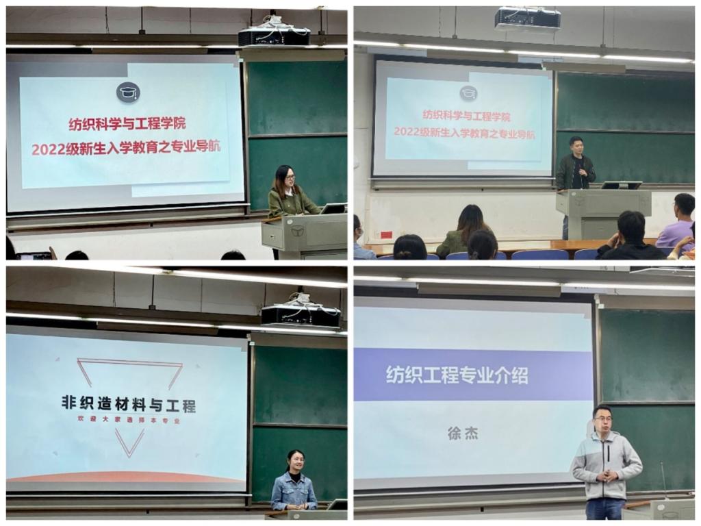 会上,徐杰老师从纺织的产业链、传统到现代的发展、学科优势以及课程体系等多个方面进行专业讲解,帮助同学们更加深入地了解纺织工程专业。胡敏老师介绍了非织造的传统与智能材料对人类社会发展所带来的重大意义,详细介绍了非织造材料、专业培养方案、团队力量和就业情况,鼓励同学们努力拼搏,在专业领域展现自己的无限价值。
