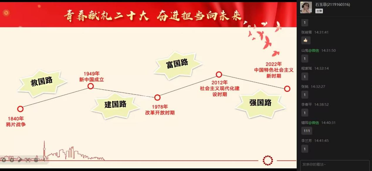 为全面带动青年认真学习贯彻党的二十大精神,引领青年员工坚定不移听党话、跟党走,yl7703永利于12月30日以企业微信直播形式开展了党的二十大精神宣讲活动。本次活动由辅导员张竣青主持,公司全体辅导员参加,yl7703永利、材料公司员工于线上参会。