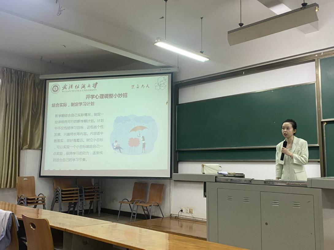 随后,辅导员又说到,开学前后的两周往往员工会出现一定的心理波动。这主要是由暑假生活与开学后的学习环境反差大造成的,同学们需要有一个主动适应的过程。在假期里玩得越“疯”,开学前后的心理不适反应可能越强,一定要引起重视。针对此现象,辅导员给出了端正心态,接纳情绪、调整生物钟、结合实际制定计划等五条建议,稳定了同学们开学焦虑不安的心情,为同学们快乐开学保驾护航。