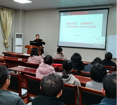 12月10日下午,yl7703永利在8H502召开党的十九届五中全会精神宣讲会,公司宣讲团成员、校办主任杜新年为公司全体教职工作了《谋划十四五 逐梦新时代》的宣讲报告。报告会由公司党委书记张红鑫主持。 杜新年结合“十四五”时期的重要意义、十九届五中全会的重要内容,并围绕《中共中央关于制定国民经济和社会发展第十四个五年规划和二〇三五年远景目标的建议》和习近平总书记在全会上的重要讲话深入阐释了党的十九届五...